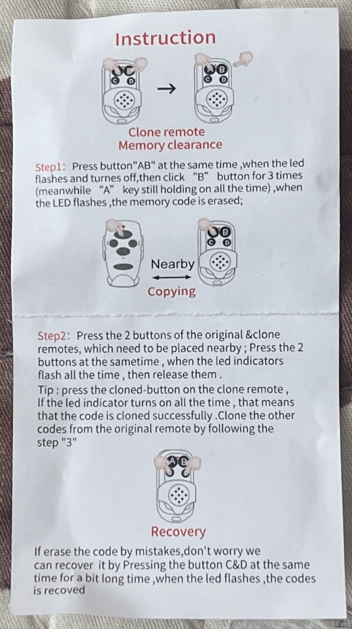 [Manual] WenQia 433.92MHz 원격 컨트롤러복사