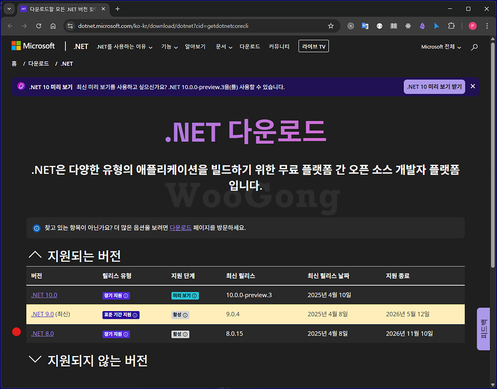 터미널에 다음 명령어를 입력해서 .NET SDK가 제대로 설치되어 있는지 확인합니다.