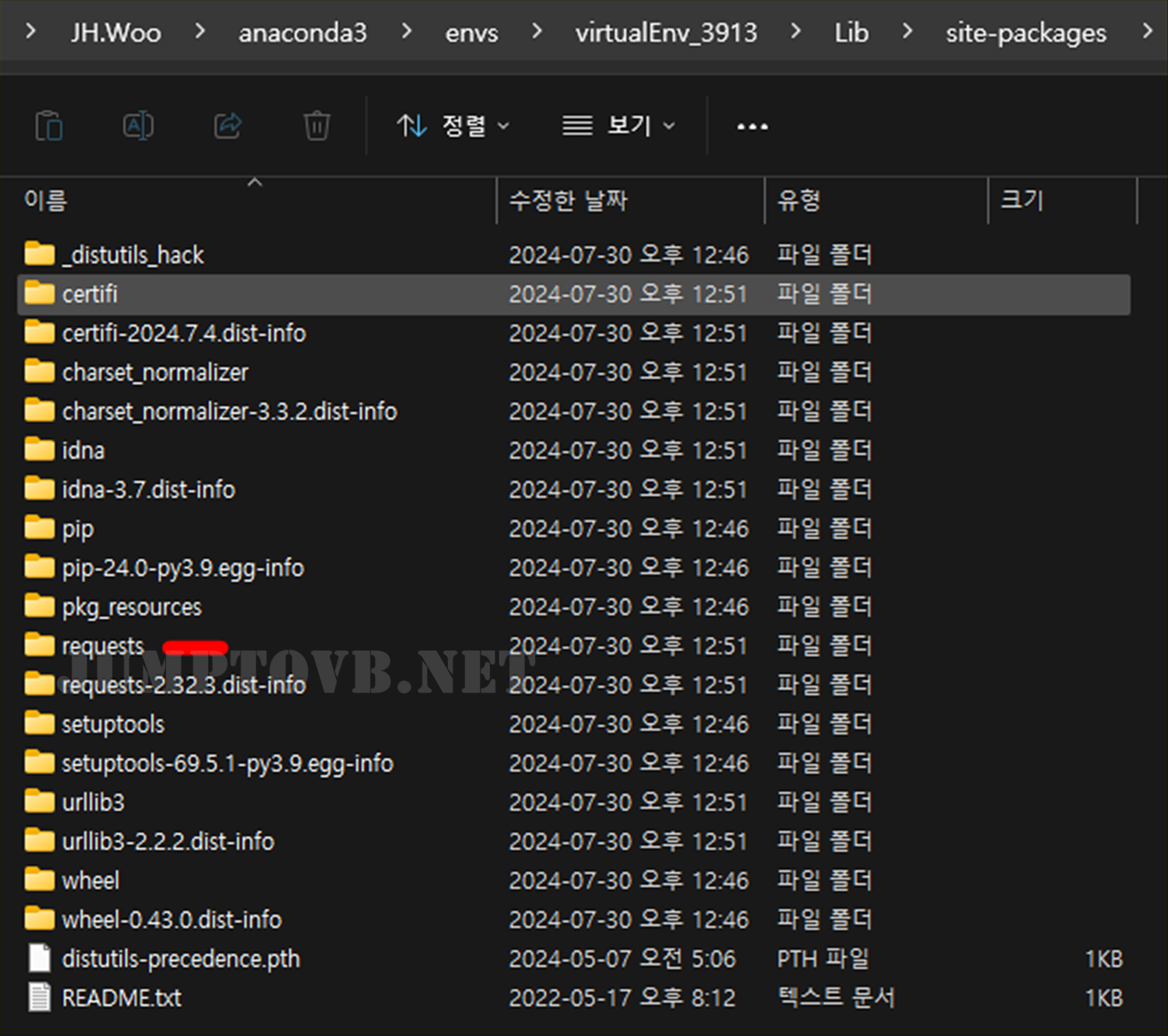 가상환경이 envs Folder 에서 삭제된 것을 확인할 수 있습니다.