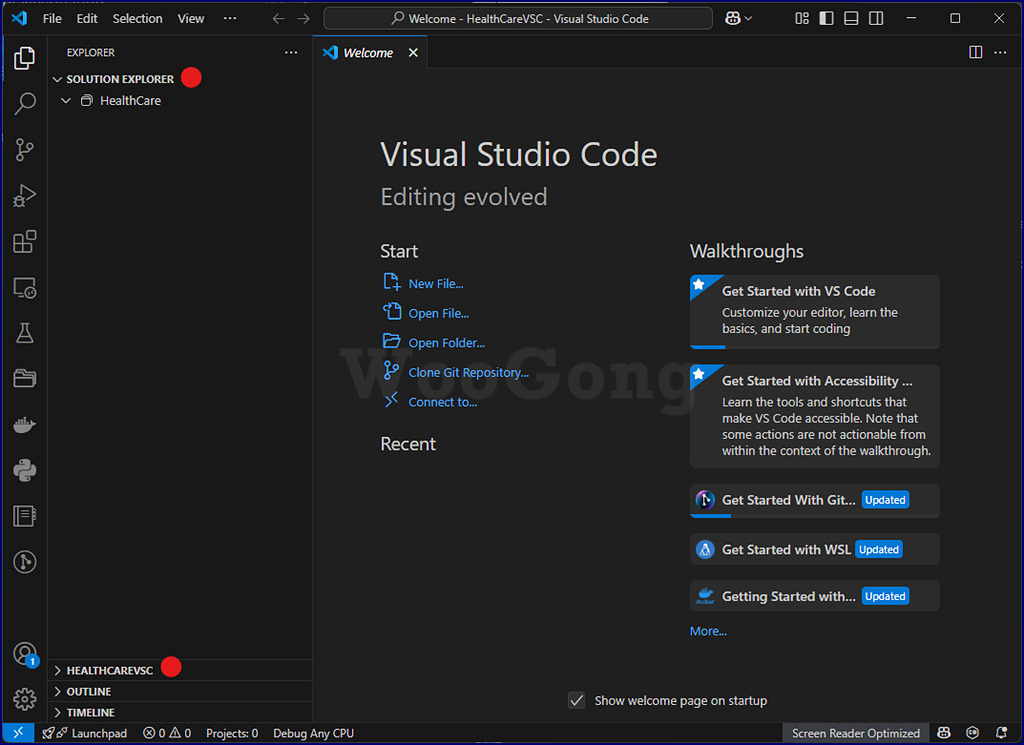 Visual Studio 2022 에서의 제작과 함께 하다보니 Solution Folder 의 위치를 HealthCare 가 아닌 HealthCareVSC 라고 하겠습니다.