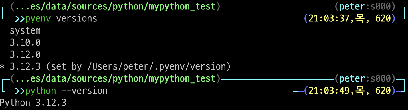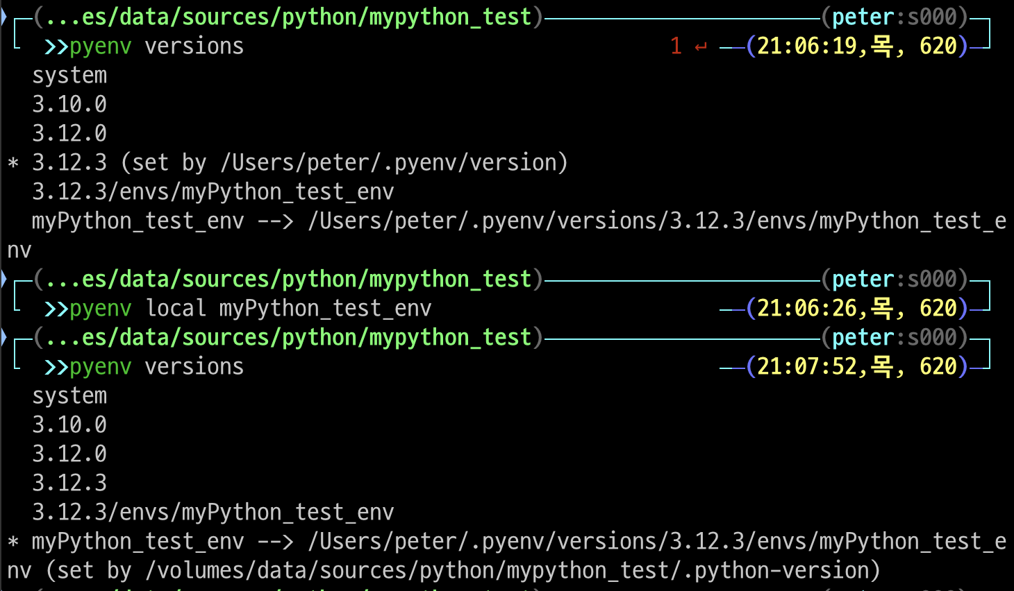 pyenv virtualenv 3.12.3 myPython_test_env7. 가상환경 생성