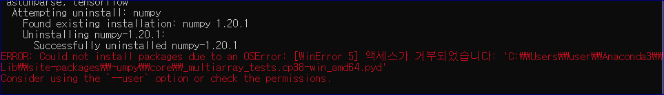ERROR: Could not install packages due to an OSError: [WinError 5] 액세스가 거부되었습니다: