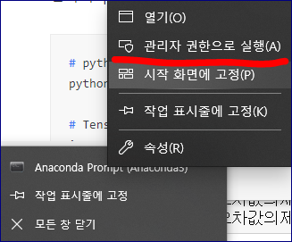 Anaconda prompt 를 "관리자 권한으로 실행" 으로 실행하여 진행한다.