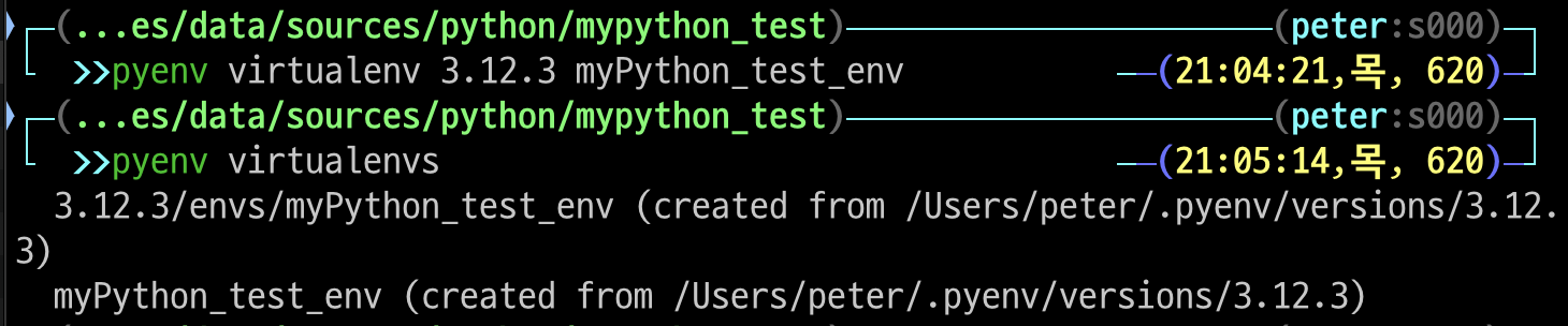 pyenv virtualenv 3.12.3 myPython_test_env7. 가상환경 생성