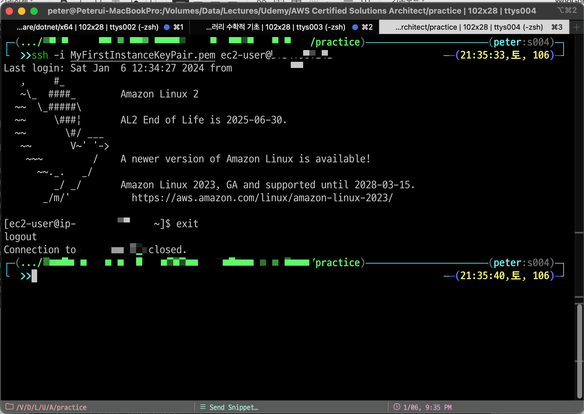 ssh -i MyFirstInstanceKeyPair.pem ec2-user@0.0.0.0.