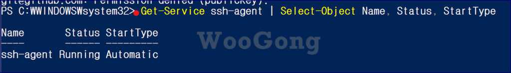 - Stopped 상태이거나 아예 보이지 않는다면, Git Bash의 SSH 에이전트를 사용해도 무방합니다.