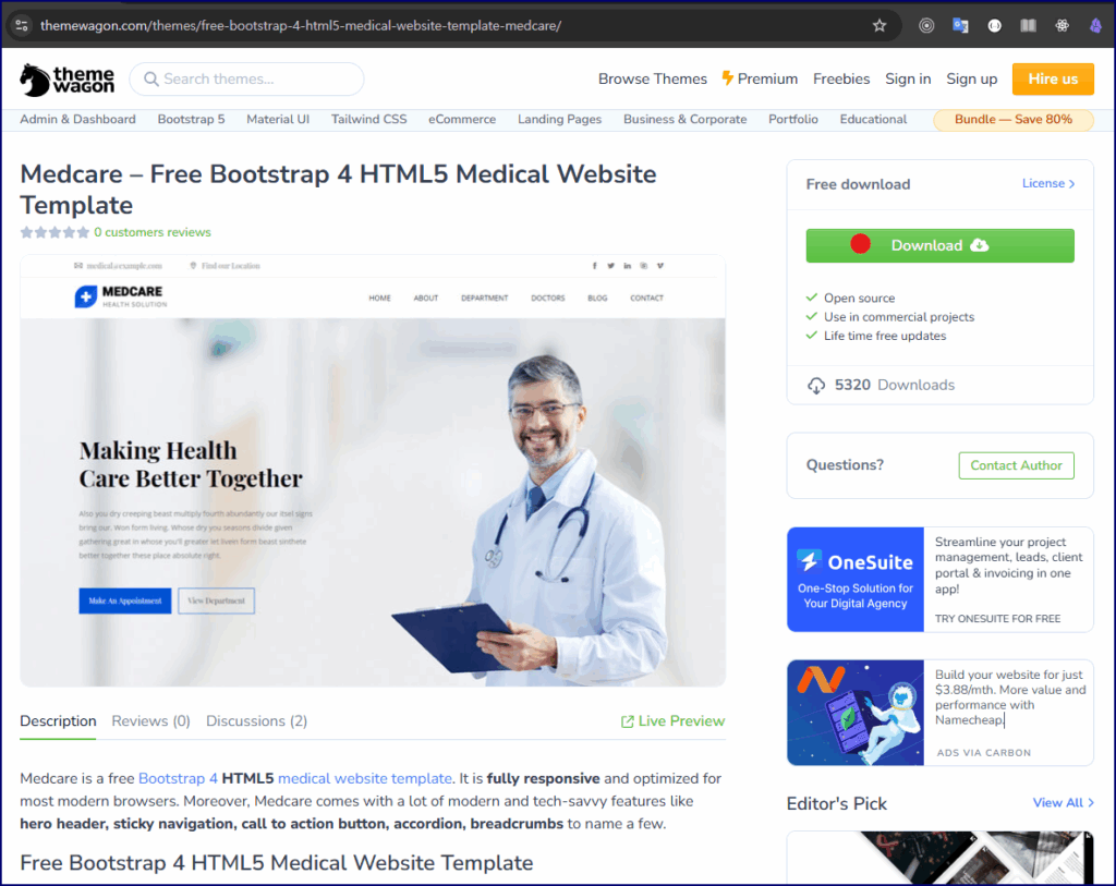 이번 3편에서는 본격적으로 Website의 뼈대가 될 HTML 파일의 구조를 파악하는 시간을 가져보려 합니다. 우리가 사용할 Template은 Themewagon.com에서 제공하는 "Medcare"라는 Medical Website 무료 Template입니다. Download는 여기에서 받으실 수 있습니다.
