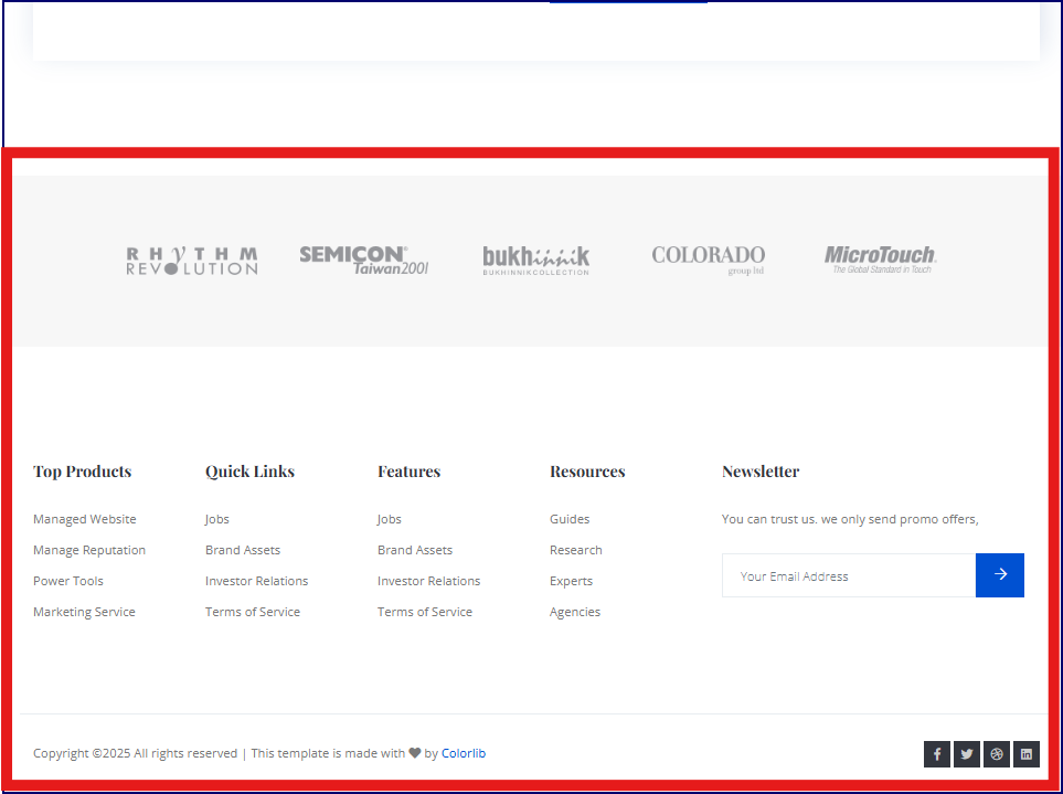 Footer 영역은 Website의 하단에 위치하며, 일반적으로 다음과 같은 정보들을 포함합니다.