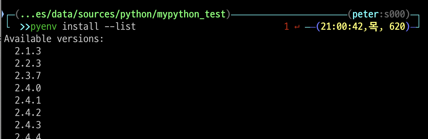 pyenv를 사용하여 설치할 수 있는 Python 버전들을 확인합니다. :