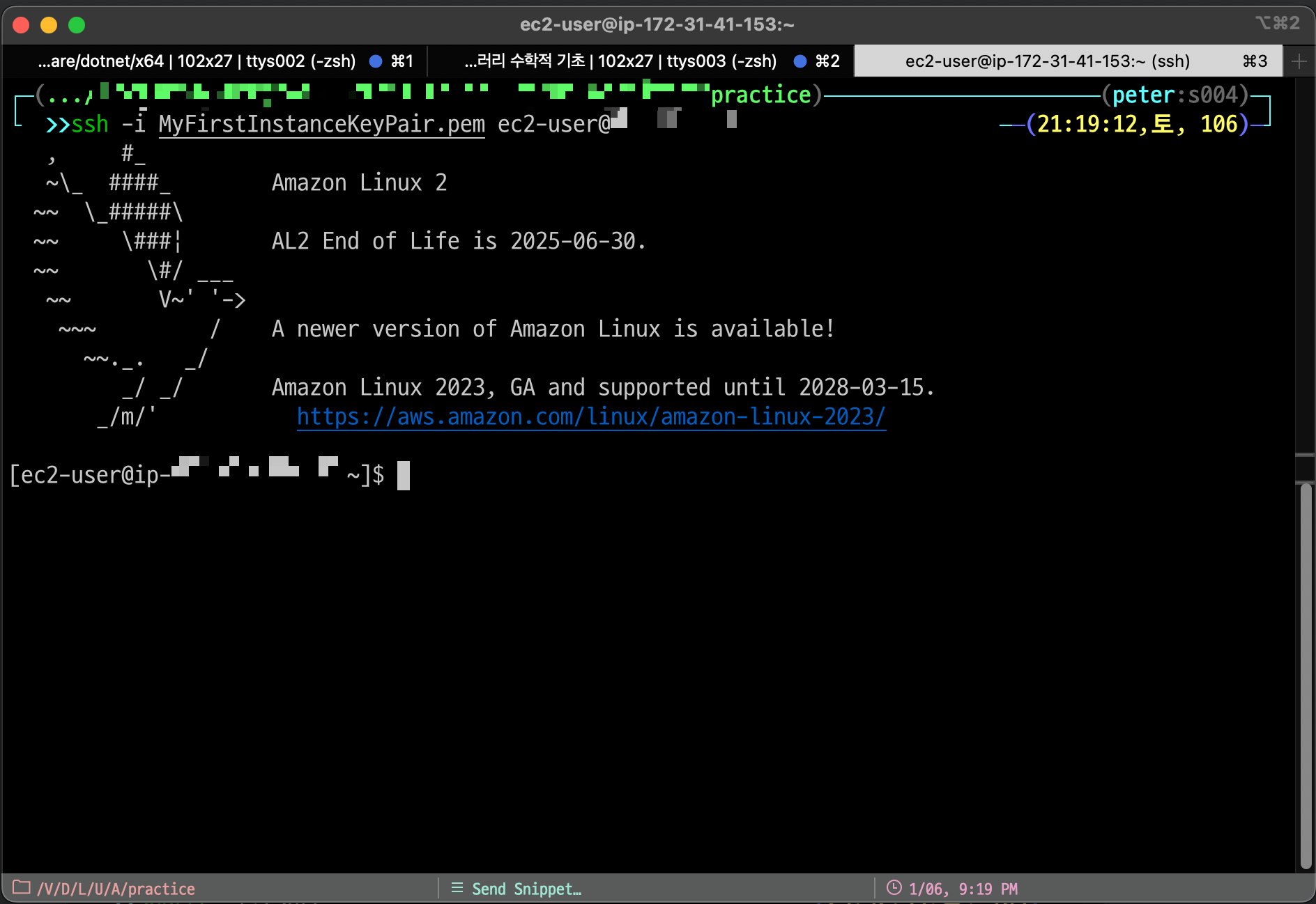 ssh -i MyFirstInstanceKeyPair.pem ec2-user@0.0.0.0.