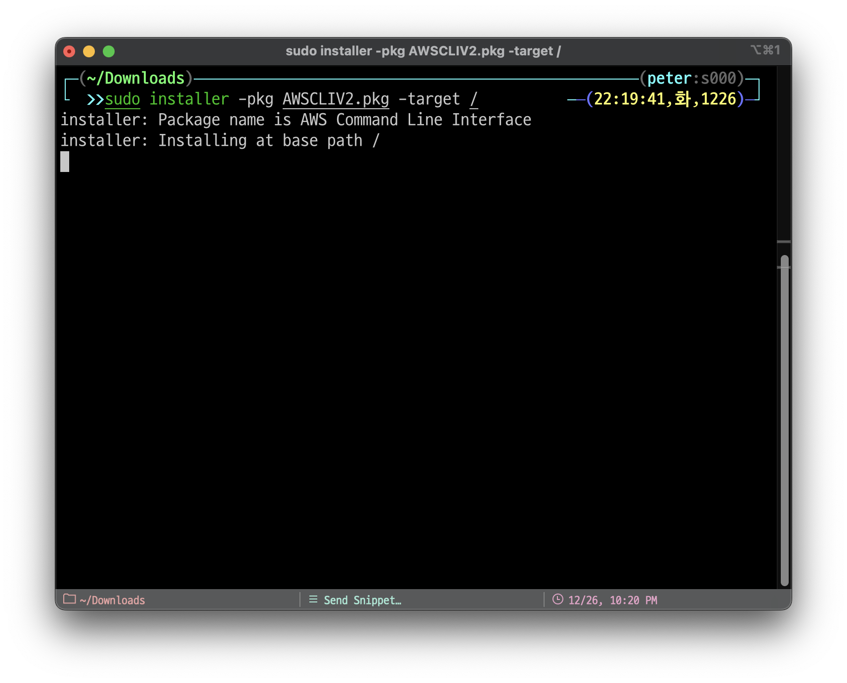 sudo installer -pkg AWSCLIV2.pkg -target /
