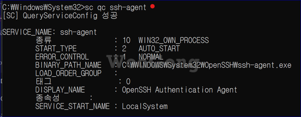 - 시작 유형 비활성화: Set-Service -Name ssh-agent -StartupType Disabled (PowerShell)