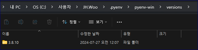 pyenv-win을 사용하여 원하는 버전의 Python을 설치합니다. 예를 들어, Python 3.8.10 을 설치합니다.